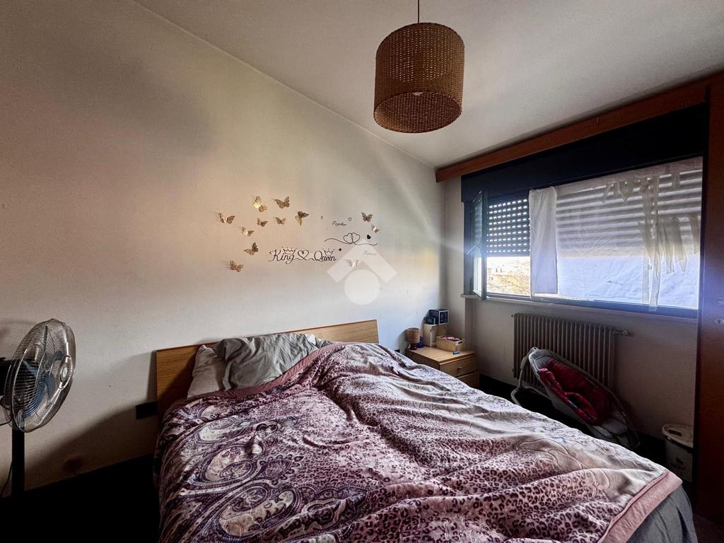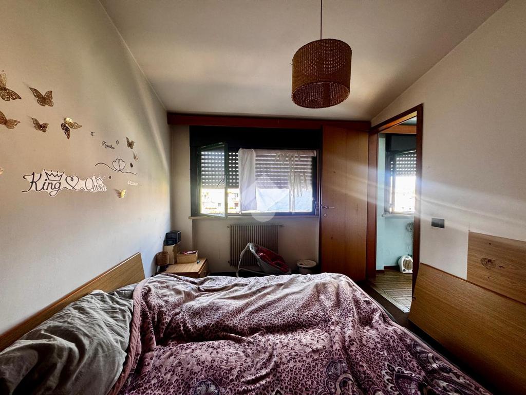 La zona notte è composta da una camera matrimoniale di buone dimensioni, dalla quale si accede direttamente al bagno privato, completo di doccia e finestra, che garantisce una piacevole illuminazione naturale e una corretta aerazione degli ambienti.